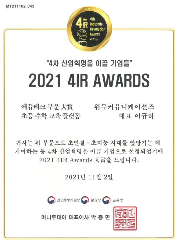 2021 4IR AWARDS 대상 페이지 정보 작성자 WeDu 댓글 0건 조회 10,883회 작성일 21-12-31 13:01 본문 2021-11-02 2021 4IR AWARDS 대상 머니투데이 List Previous2021 소년한국 우수 어린이 도서 22.01.06 Next2020 소년한국 우수 어린이 도서 선정 21.12.31